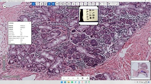 病理科常見的樣品觀察主要包括液基細胞(TCT)檢查、組織病理切片(HE)、免疫組化(IHC)以及熒光原位雜交(FISH)等。病人的對應樣品在病理醫師通過顯微鏡觀察做出診斷后還需要保存非常長的一段時間(用于復查與復診),而大醫院的病理科日均樣品量就有好幾百例,樣品保存和管理需要耗費大量的空間以及人力資源。而切片掃描系統就能極大地解決這個問題,它的本質是將物理切片的圖像內容數字化保存到電腦或者服務器上,從而實現永久保存該玻片樣品所有信息的功能。
