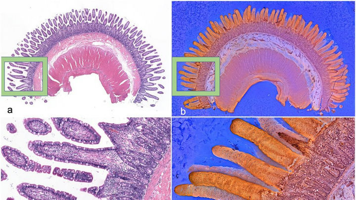 目前國外已經(jīng)有寵物醫(yī)院在嘗試使用熒光模擬明場成像FIBI,來進行免冷凍切片制樣的快速病理診斷,據(jù)論文研究可靠性基本和HE染色的病理切片相近,而且制樣是非破壞性的,儀器只需要一臺405nm熒光激發(fā)的三軸電動顯微鏡,以及相機和配套的成像掃描軟件。
