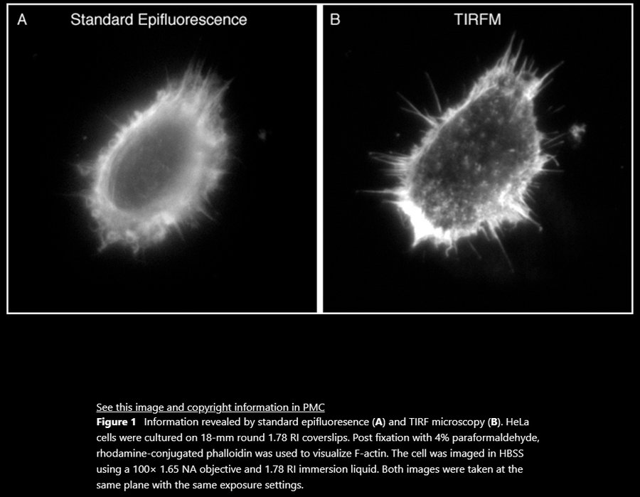 ①Fish KN. Total Internal Reflection Fluorescence (TIRF) Microscopy. Curr Protoc. 2022 Aug;2(8):e517. doi: 10.1002/cpz1.517. PMID: 35972209; PMCID: PMC9522316.